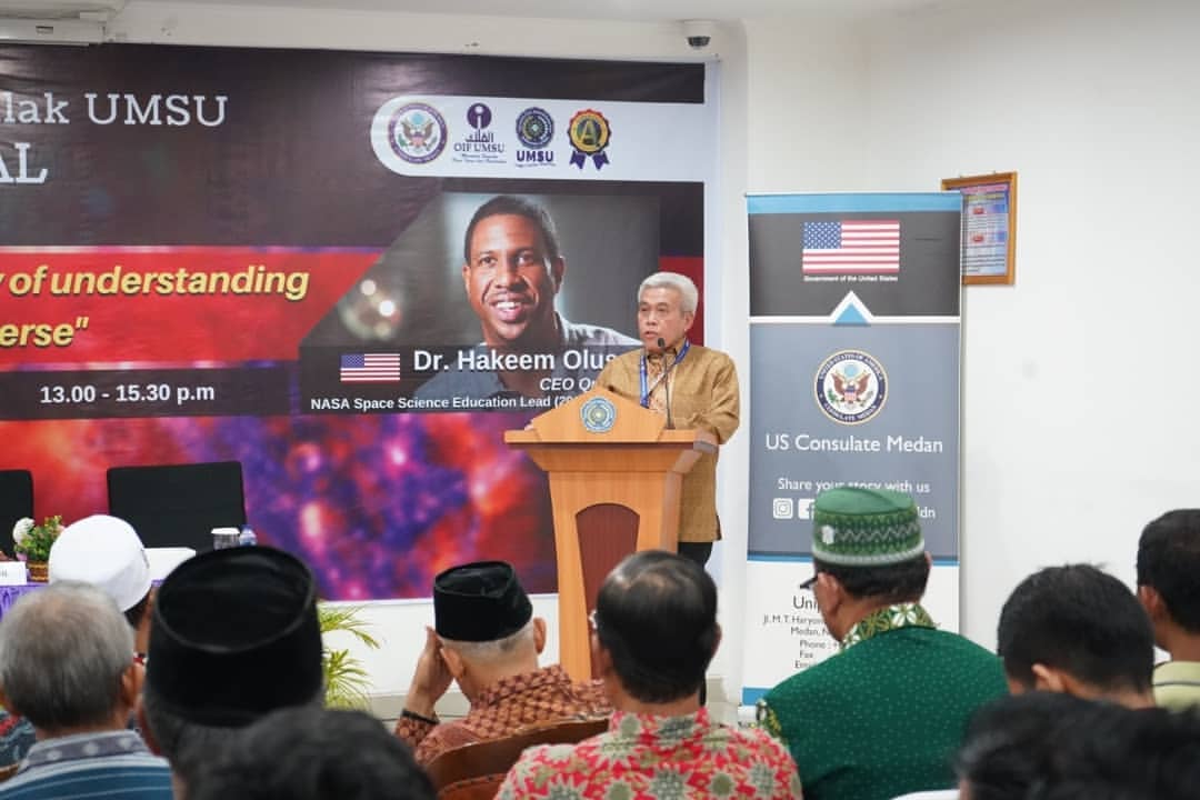 PASCASARJANA-UMSU || Peneliti dari National Aeronautics Space Administration (NASA) Dr Hakeem Oluseyi memberikan kuliah umum di Pascasarjana UMSU, Kamis (10/10), dengan tema : Multicultural History of Understanding Our Universe.